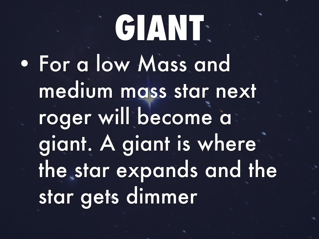 For a low Mass and medium mass star next roger will become a giant. A giant is where the star expands and the star gets dimmer