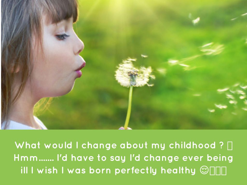 What would I change about my childhood ? π€ Hmm....... I'd have to say I'd change ever being ill I wish I was born perfectly healthy ππππ