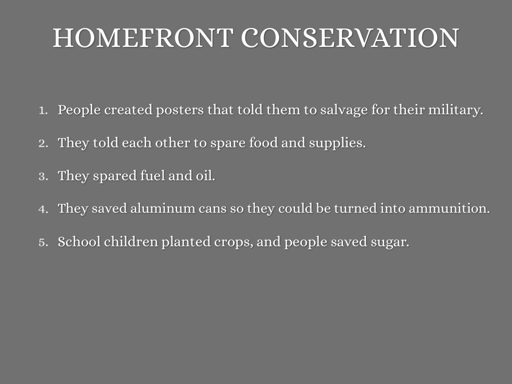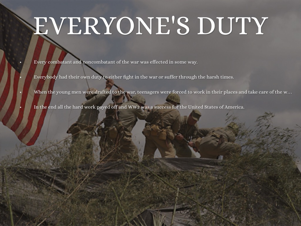 Everybody had their own duty to either fight in the war or suffer through the harsh times.