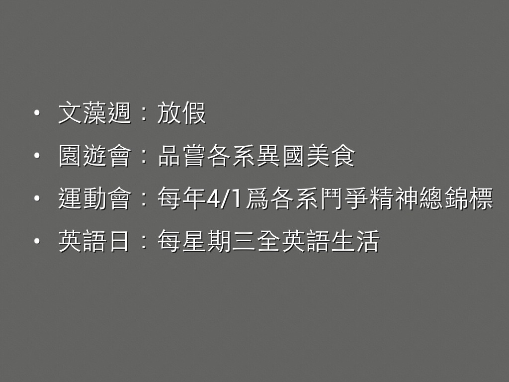 - 運動會:每年4/1爲各系鬥爭精神總錦標