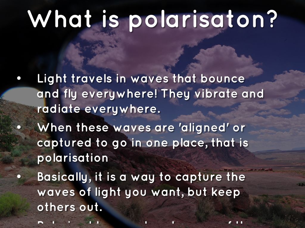 When these waves are 'aligned' or captured to go in one place, that is polarisation