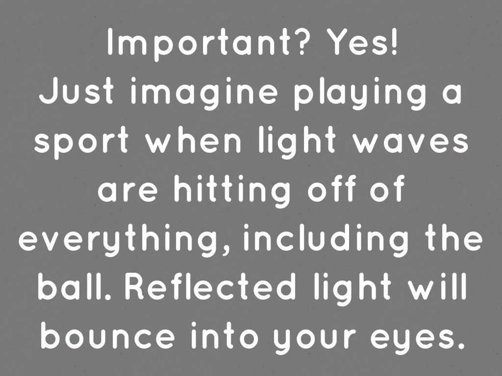 Just imagine playing a sport when light waves are hitting off of everything, including the ball. Reflected light will bounce into your eyes.