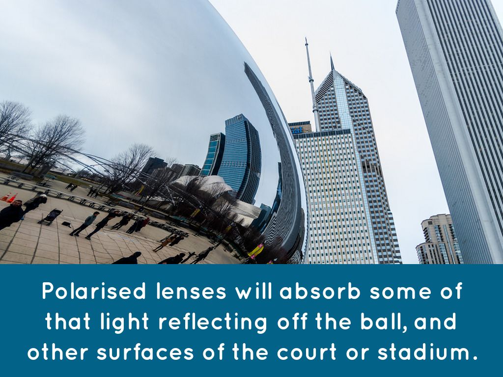 Polarised lenses will absorb some of that light reflecting off the ball, and other surfaces of the court or stadium.