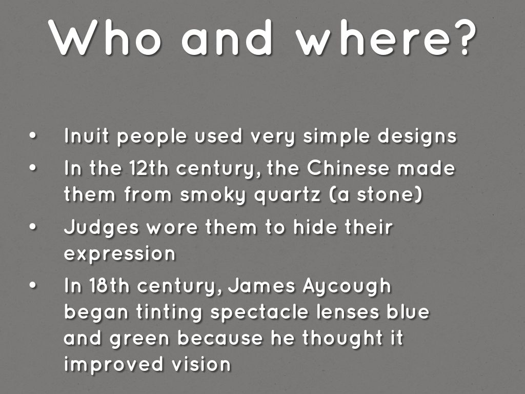 In 18th century, James Aycough began tinting spectacle lenses blue and green because he thought it improved vision