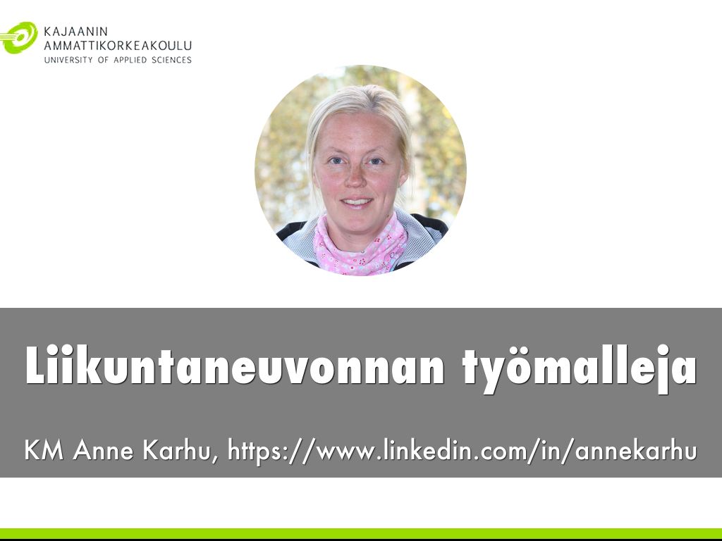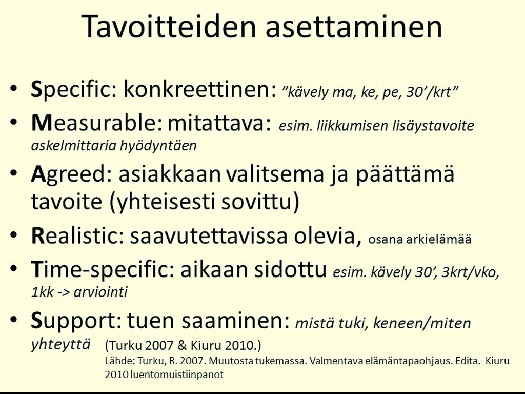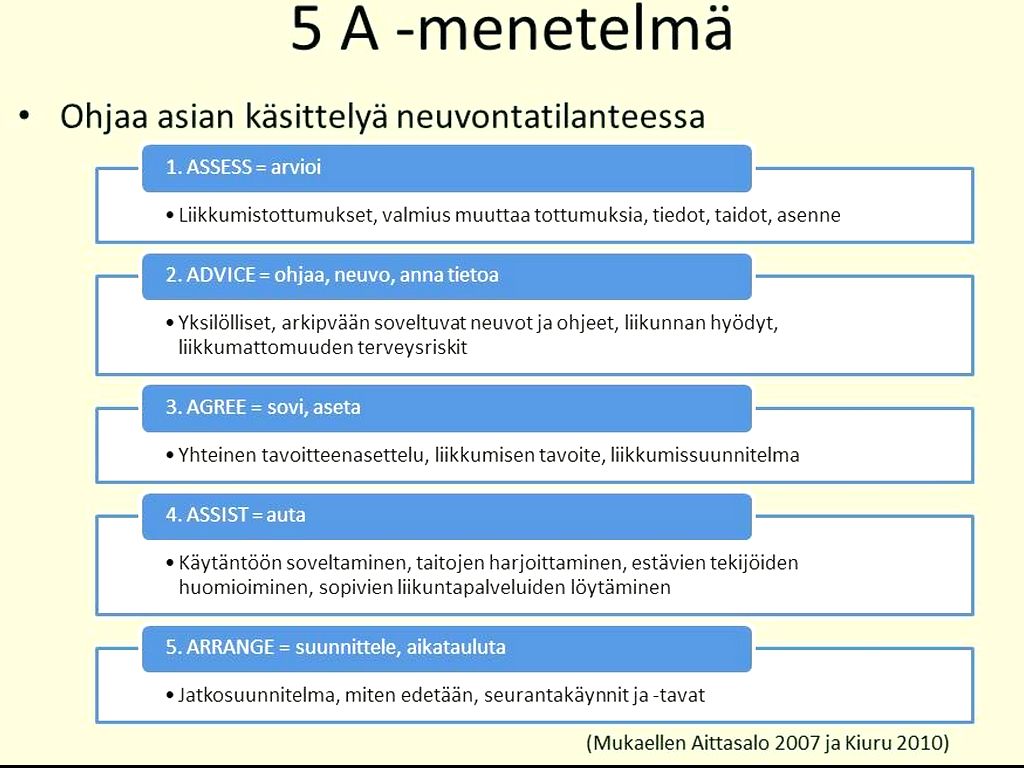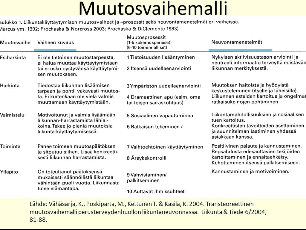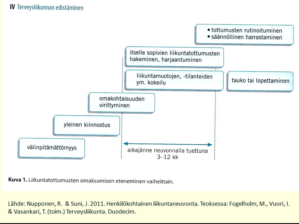 - Nupponen, R. & Suni, J. 2011. Henkilökohtainen liikuntaneuvonta. Teoksessa: Fogelholm, M., Vuori, I. & Vasankari, T. (toim.) 2011. Terveysliikunta. Duodecim.