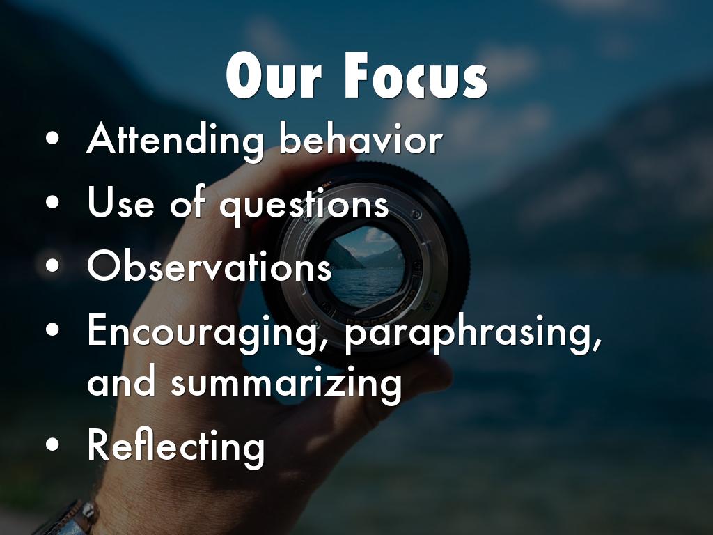 Use to start the conversation and to elaborate or clarify the careseeker's story