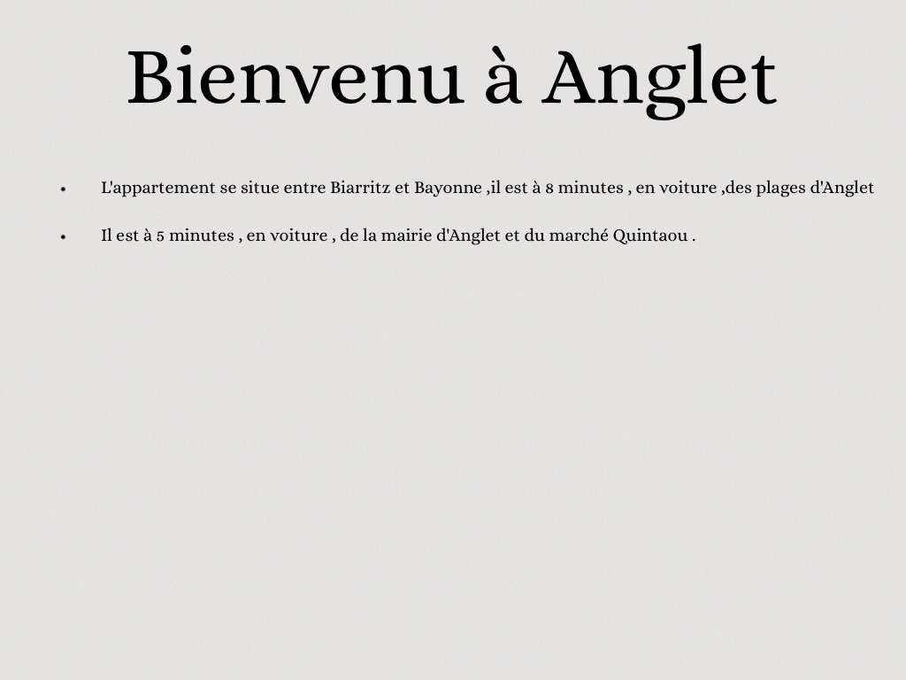 L'appartement se situe entre Biarritz et Bayonne ,il est à 8 minutes , en voiture ,des plages d'Anglet
