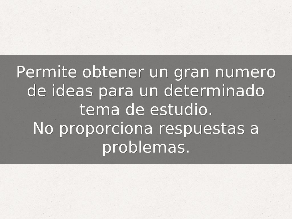 Permite obtener un gran numero de ideas para un determinado tema de estudio.