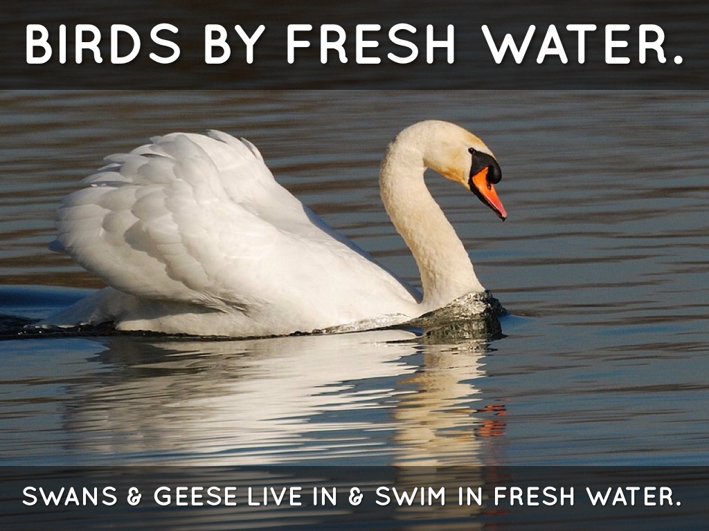 SWANS & GEESE LIVE IN & SWIM IN FRESH WATER.