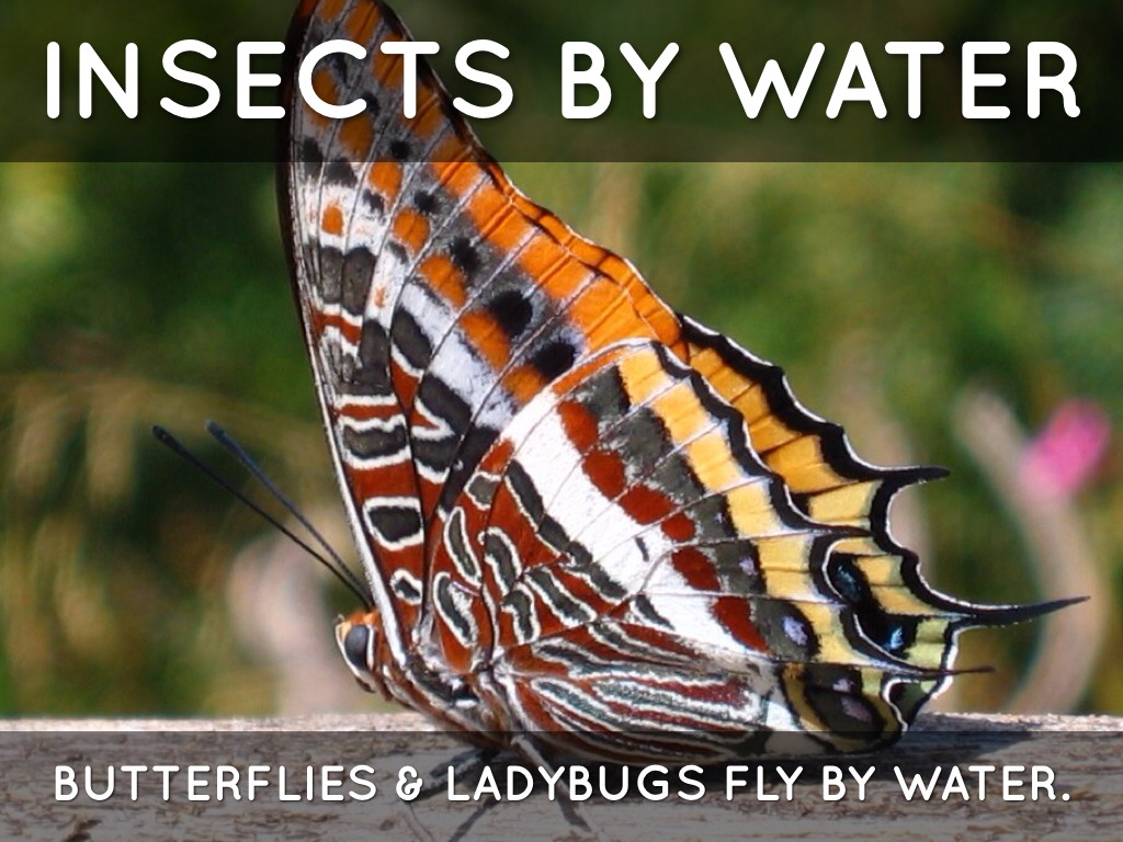 BUTTERFLIES & LADYBUGS FLY BY WATER.