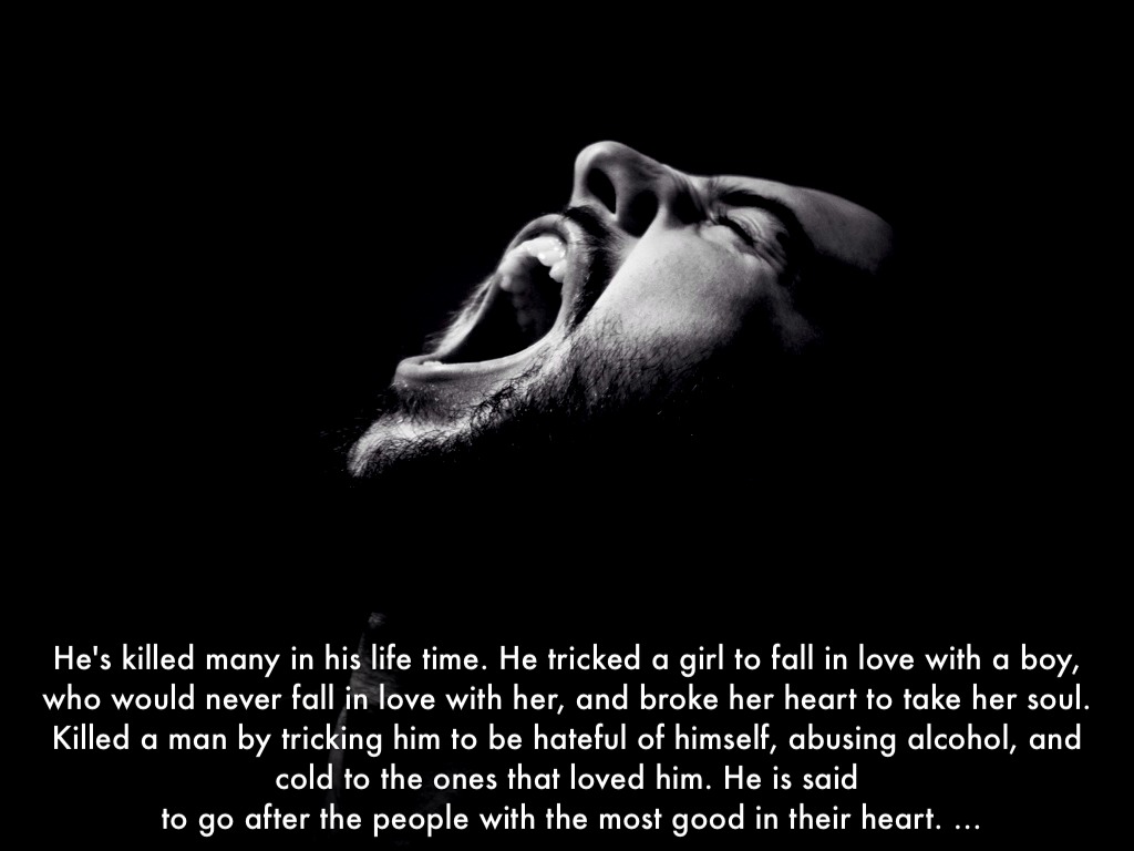 He's killed many in his life time. He tricked a girl to fall in love with a boy, who would never fall in love with her, and broke her heart to take her soul. Killed a man by tricking him to be hateful of himself, abusing alcohol, and cold to the ones that loved him. He is said to go after the people with the most good in their heart.