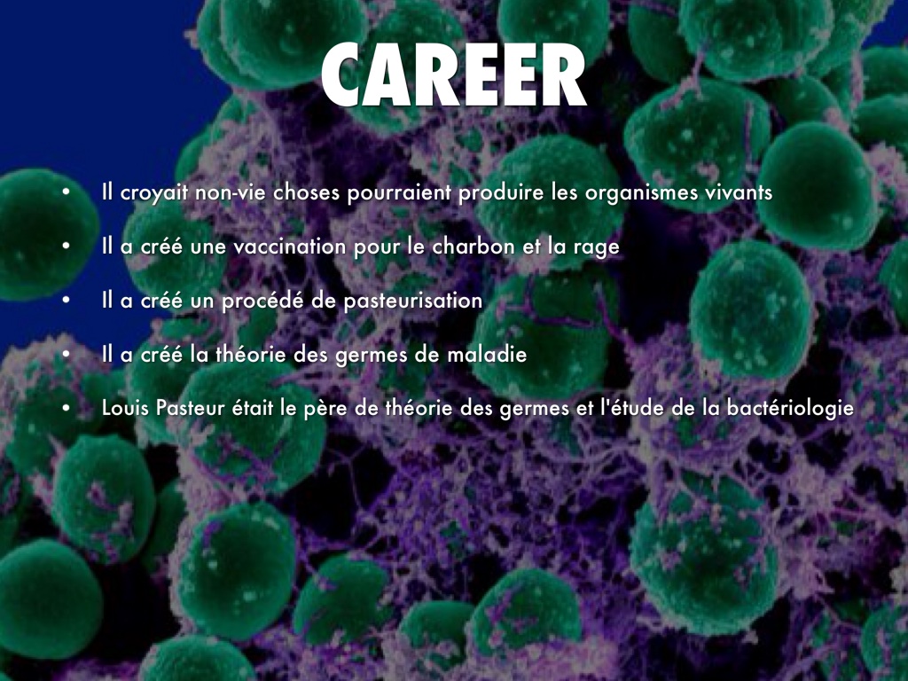 • Louis Pasteur était le père de théorie des germes et l'étude de la bactériologie