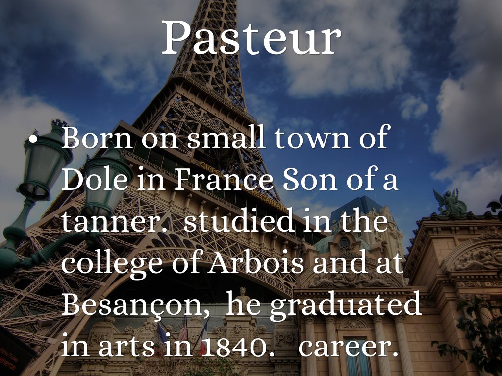 Born on small town of Dole in France Son of a tanner. studied in the college of Arbois and at Besançon, he graduated in arts in 1840. career. As a student preparing for the prestigious école Normale Supérieure of Paris, did not doubt his ability. gained admittance by passing fourteenth on the list, he refused entry; taking the examination again, he won third place and accepted. For his doctorate his attention was directed to the then obscure science of crystallography. This was to have a decisive influence on his