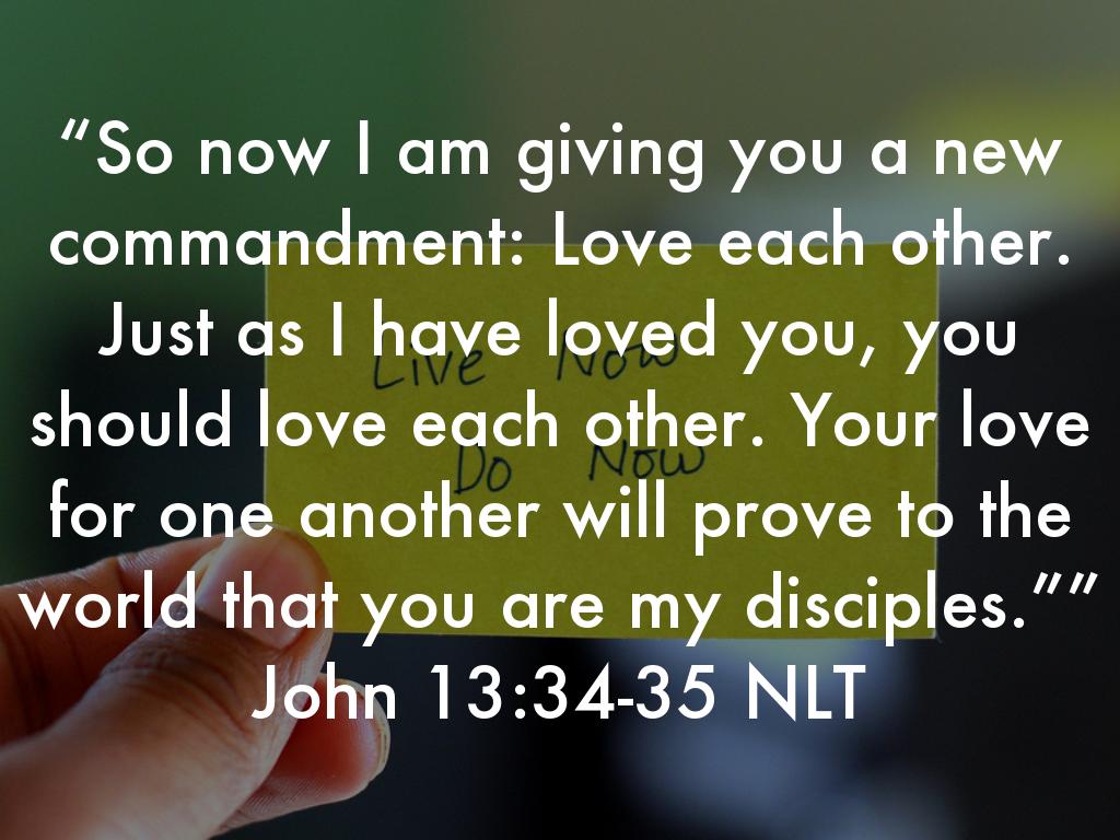 “So now I am giving you a new commandment: Love each other. Just as I have loved you, you should love each other. Your love for one another will prove to the world that you are my disciples.”” John 13:34-35 NLT
