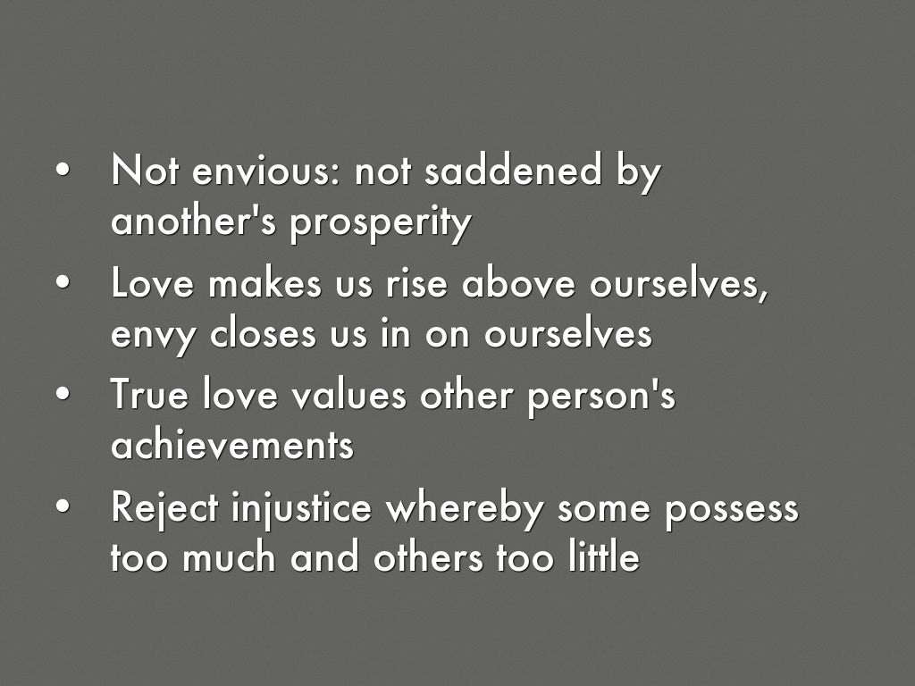 Love makes us rise above ourselves, envy closes us in on ourselves