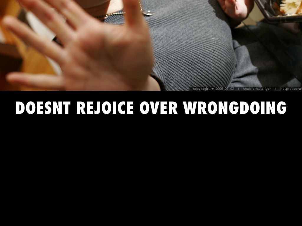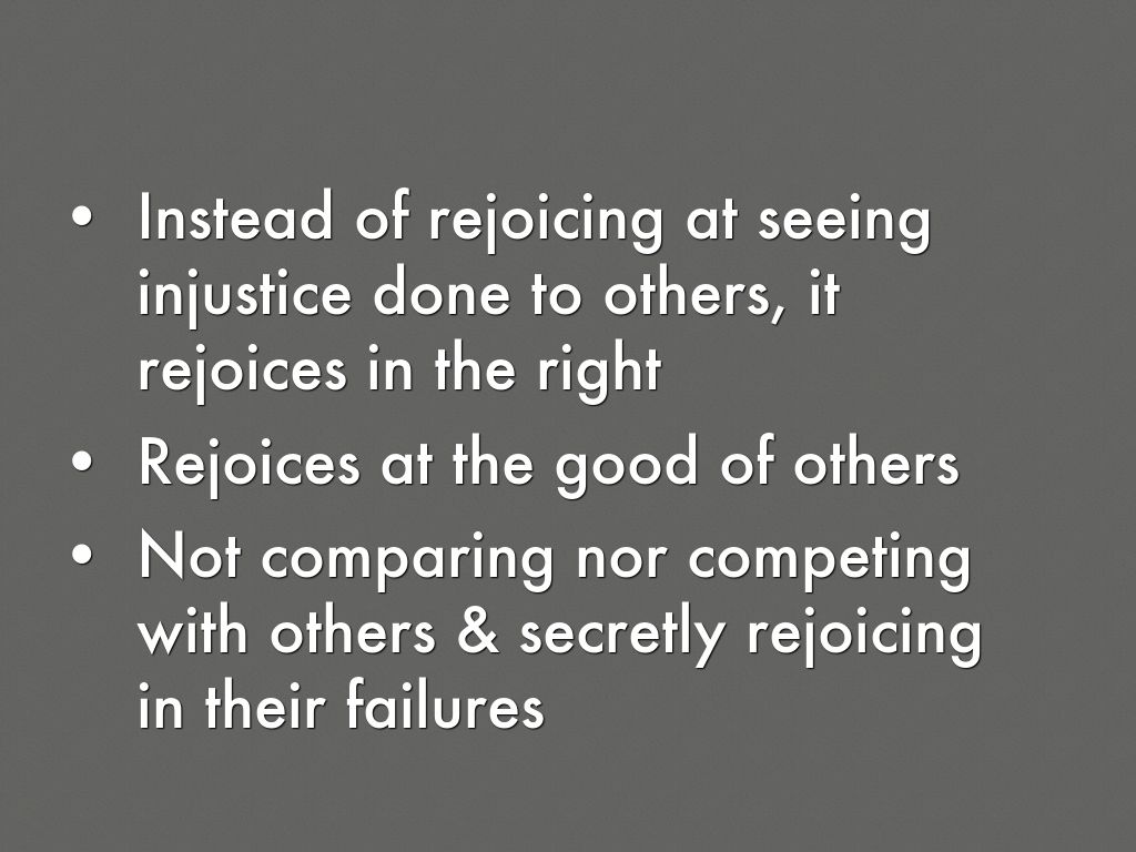 Instead of rejoicing at seeing injustice done to others, it rejoices in the right