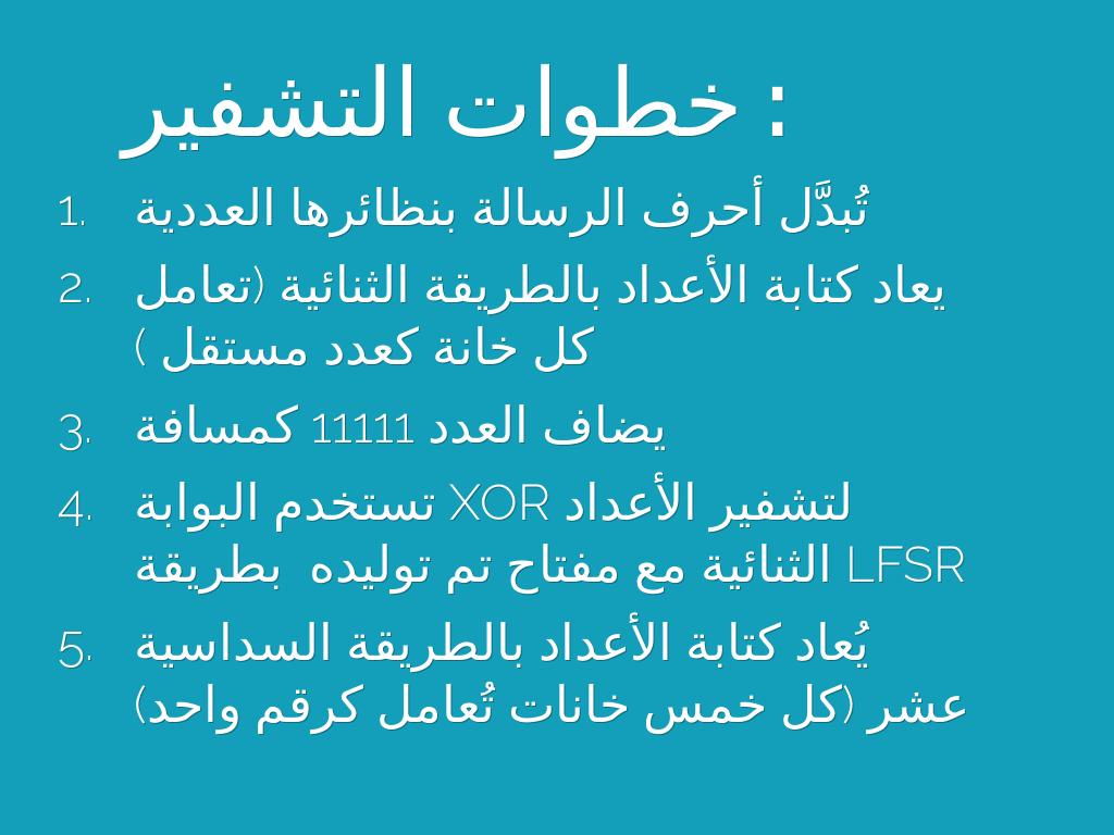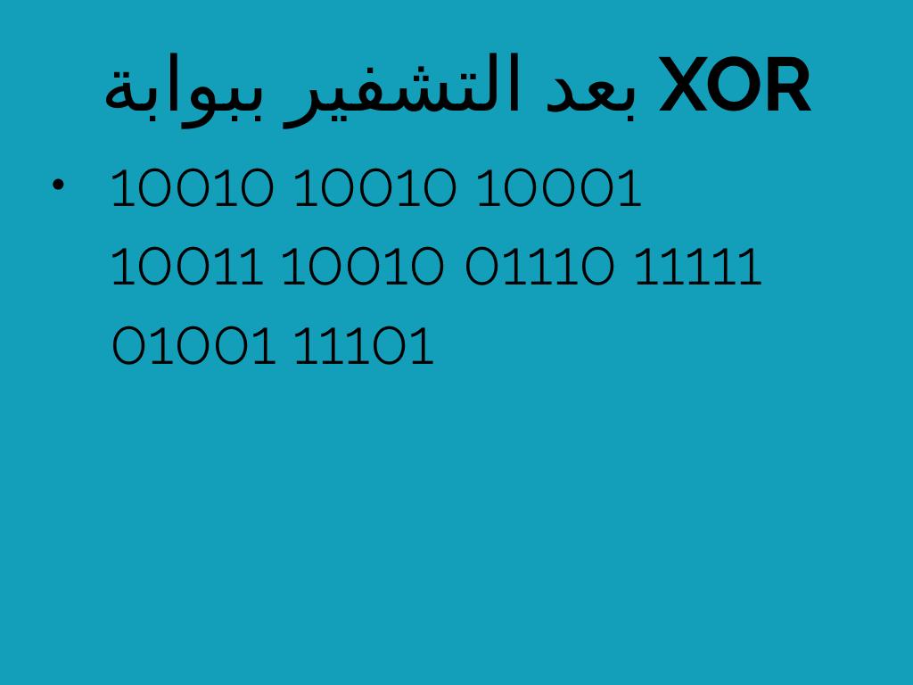 تستخدم البوابة XOR لتشفير الأعداد الثنائية مع مفتاح تم توليده بطريقة LFSR