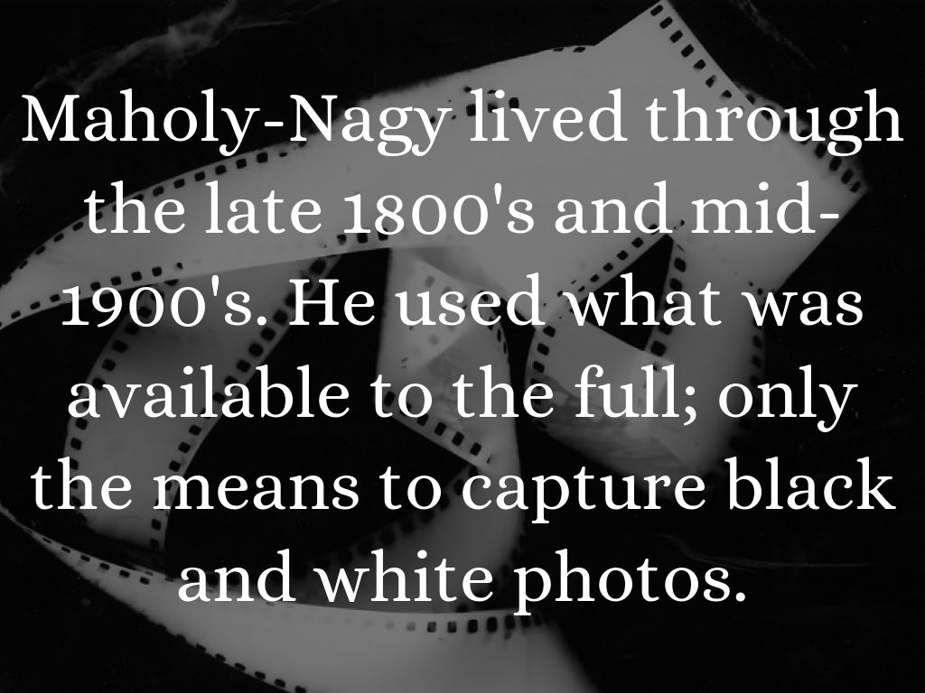Maholy-Nagy lived through the late 1800's and mid-1900's. He used what was available to the full; only the means to capture black and white photos.