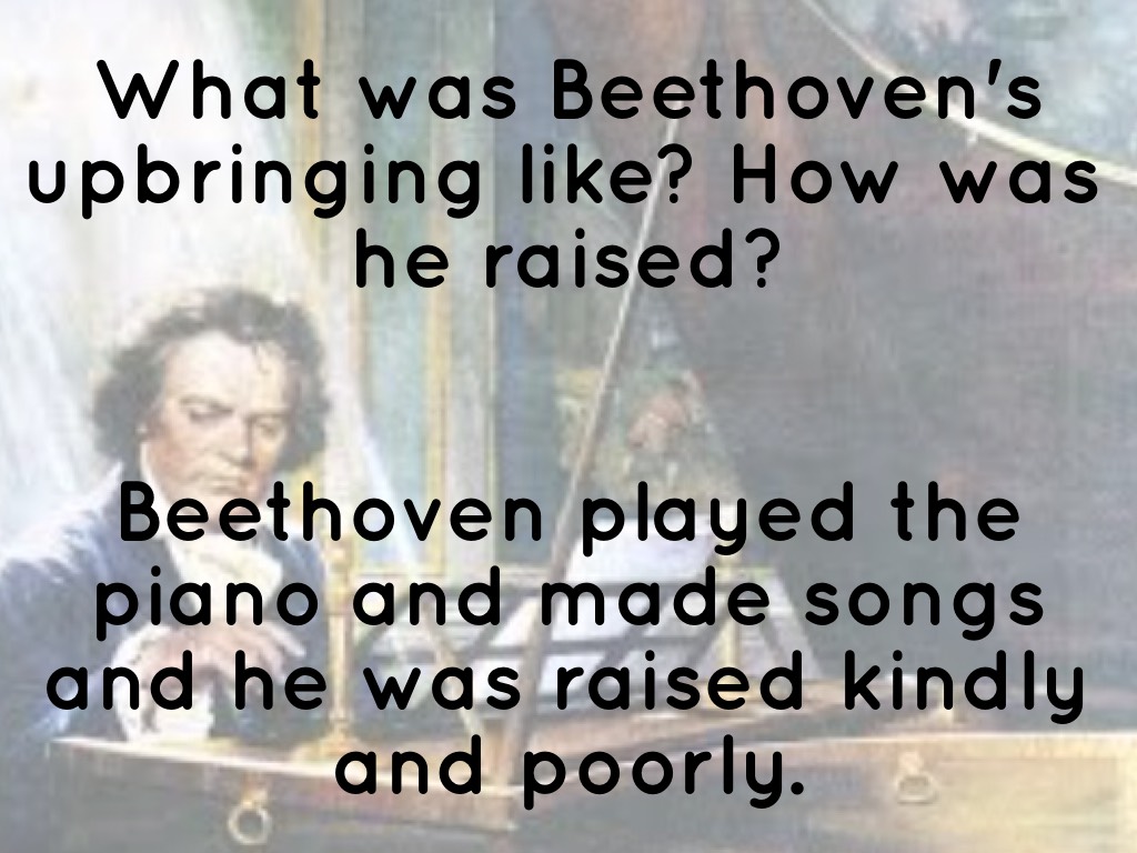 Beethoven played the piano and made songs and he was raised kindly and poorly.