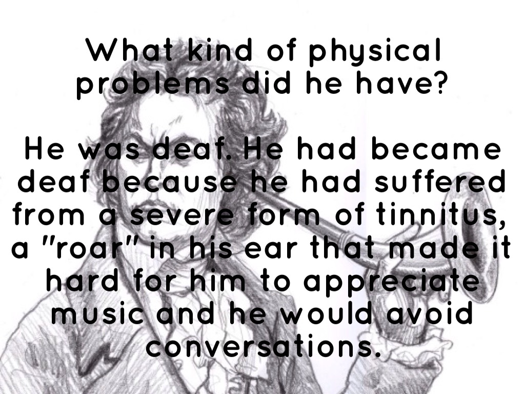 He was deaf. He had became deaf because he had suffered from a severe form of tinnitus, a "roar" in his ear that made it hard for him to appreciate music and he would avoid conversations.