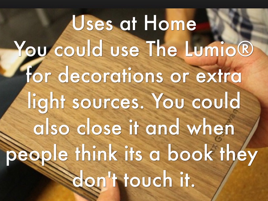You could use The Lumio® for decorations or extra light sources. You could also close it and when people think its a book they don't touch it.