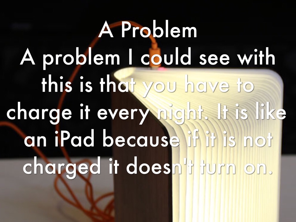 A problem I could see with this is that you have to charge it every night. It is like an iPad because if it is not charged it doesn't turn on.