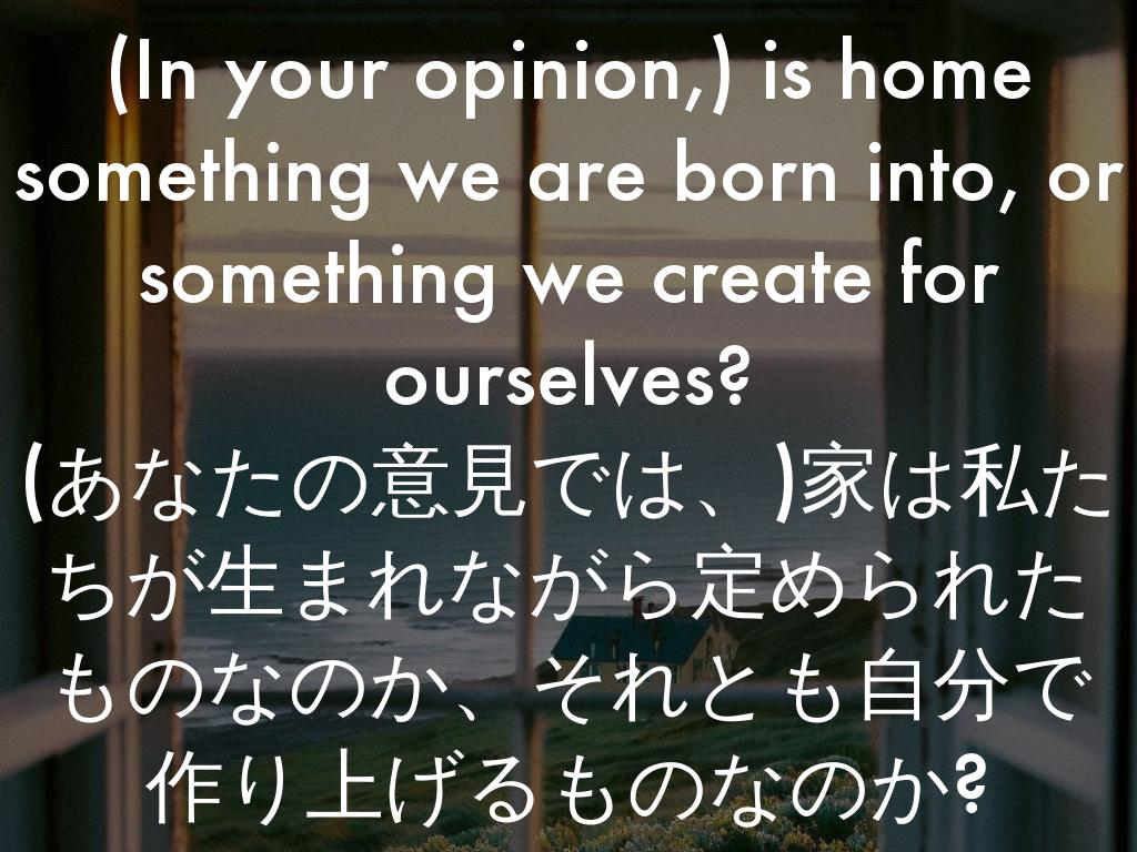 (あなたの意見では、)家は私たちが生まれながら定められたものなのか、それとも自分で作り上げるものなのか?