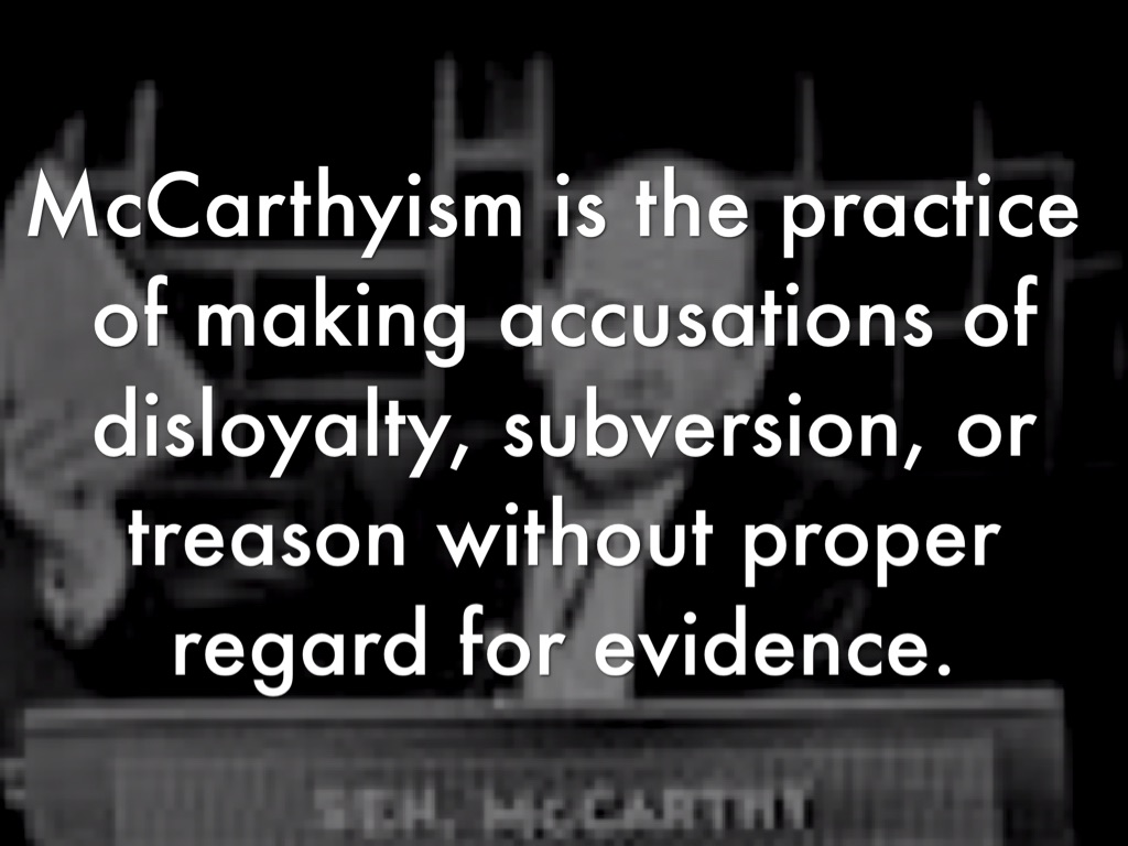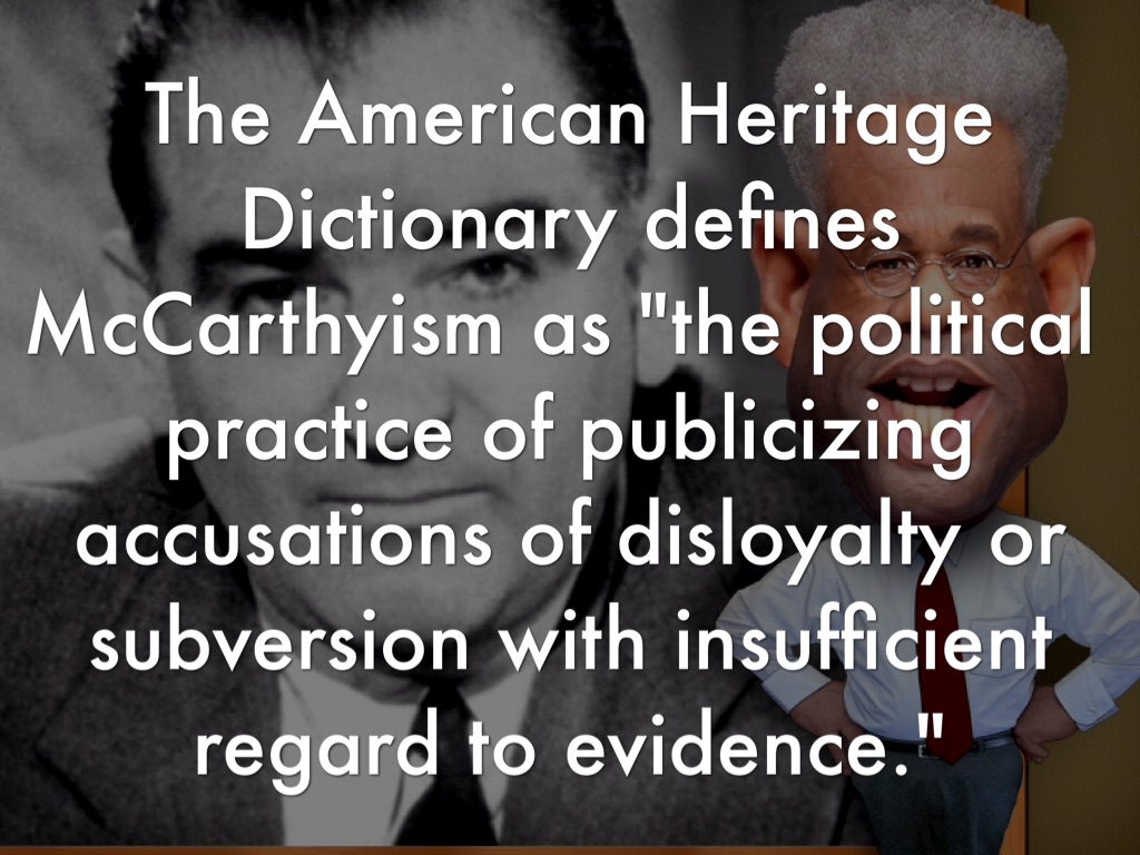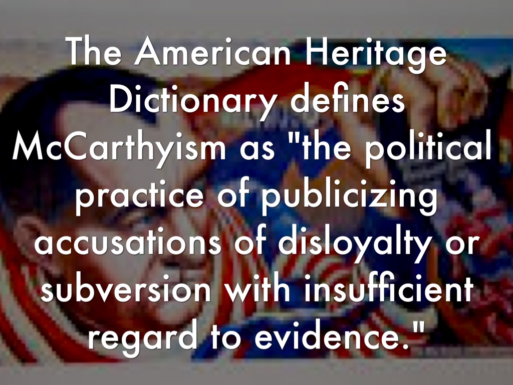 The American Heritage Dictionary defines McCarthyism as "the political practice of publicizing accusations of disloyalty or subversion with insufficient regard to evidence."