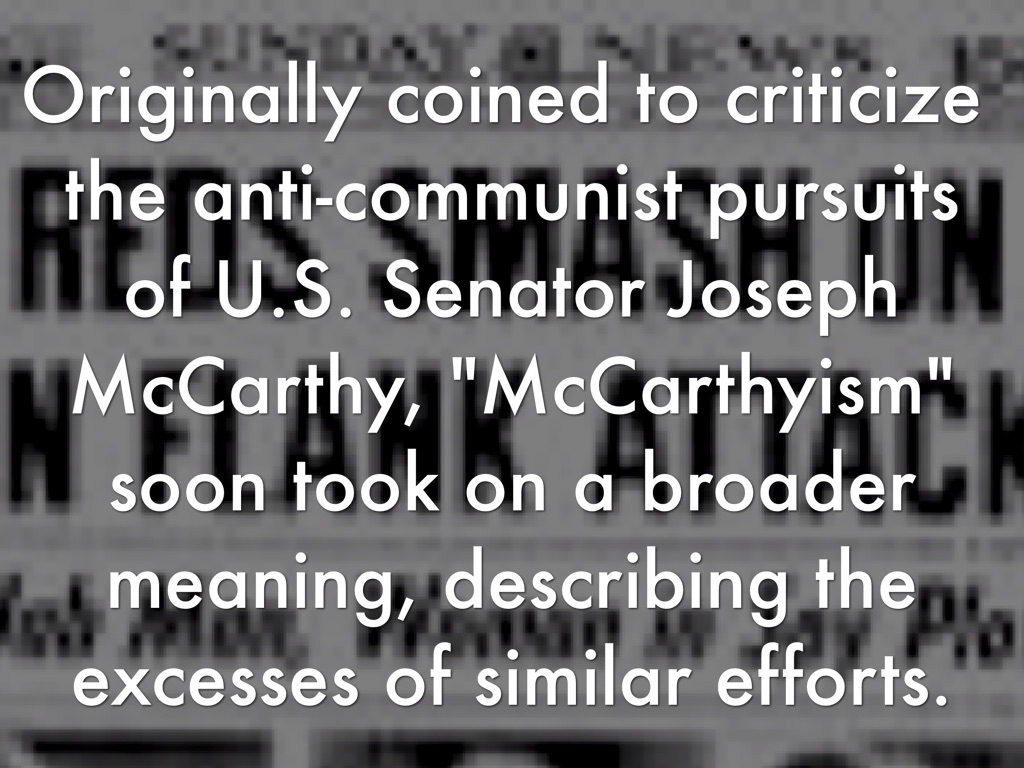 Originally coined to criticize the anti-communist pursuits of U.S. Senator Joseph McCarthy, "McCarthyism" soon took on a broader meaning, describing the excesses of similar efforts.
