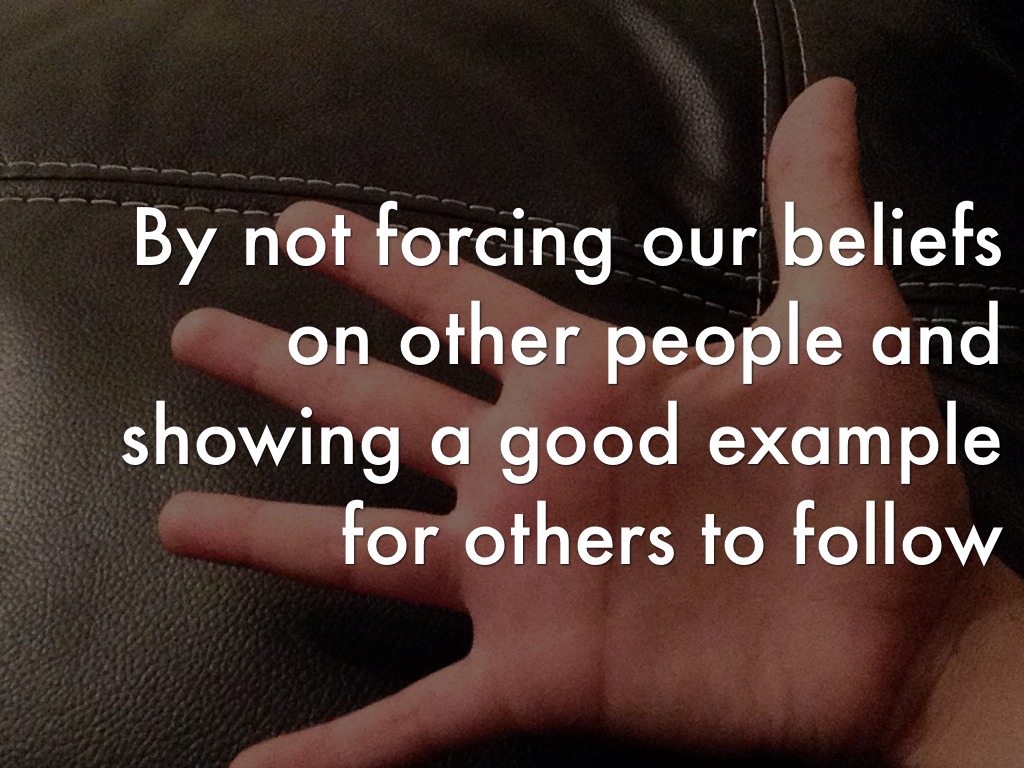 By not forcing our beliefs on other people and showing a good example for others to follow