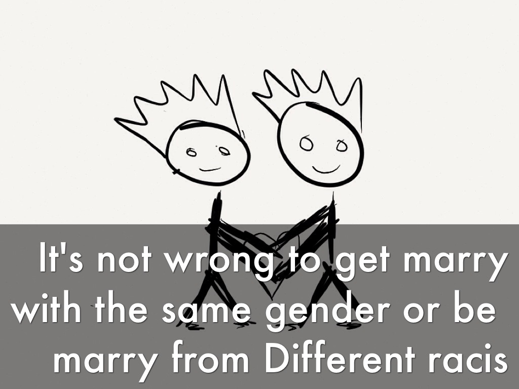 It's not wrong to get marry with the same gender or be marry from Different racis