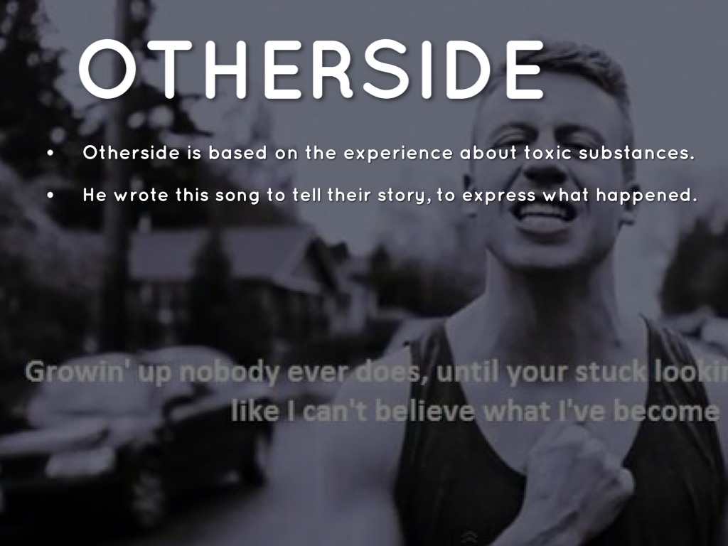 Otherside is based on the experience that the toxic substances, wrote this song to tell their story, to express what happened.