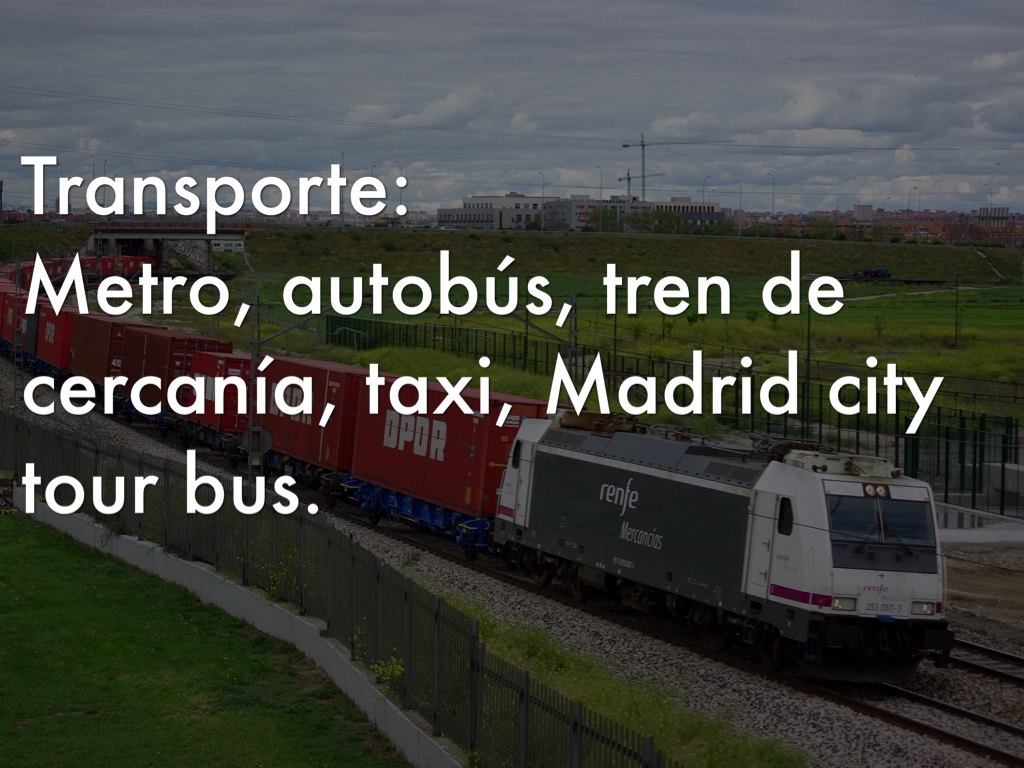 Metro, autobús, tren de cercanía, taxi, Madrid city tour bus.