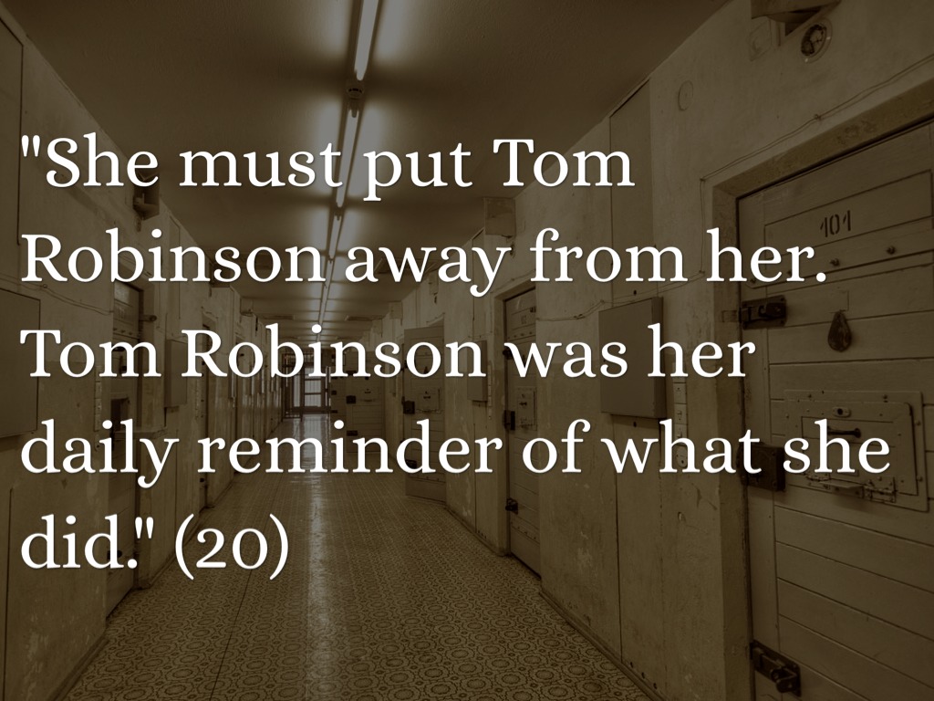 "She must put Tom Robinson away from her. Tom Robinson was her daily reminder of what she did." (20)