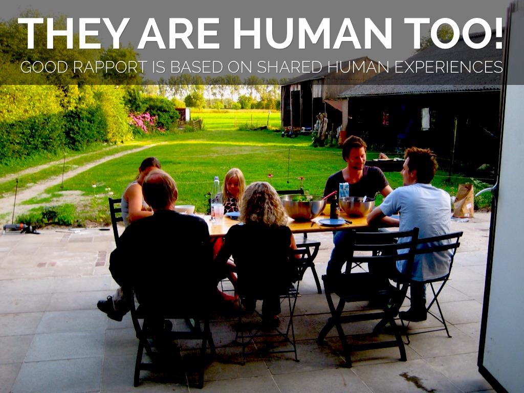 GOOD RAPPORT IS BASED ON SHARED HUMAN EXPERIENCES