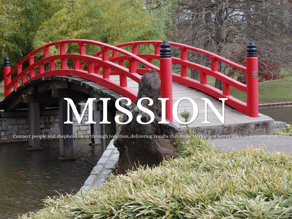 Connect people and shepherd ideas through to action, delivering results that make Memphis a better place to live and work