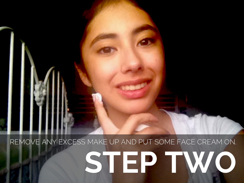 REMOVE ANY EXCESS MAKE UP AND PUT SOME FACE CREAM ON.