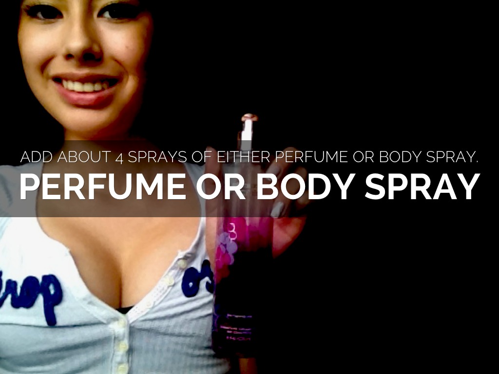 ADD ABOUT 4 SPRAYS OF EITHER PERFUME OR BODY SPRAY.