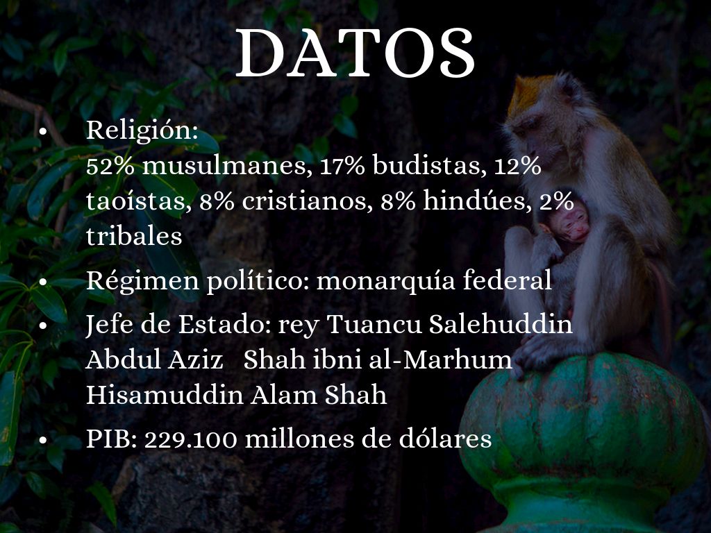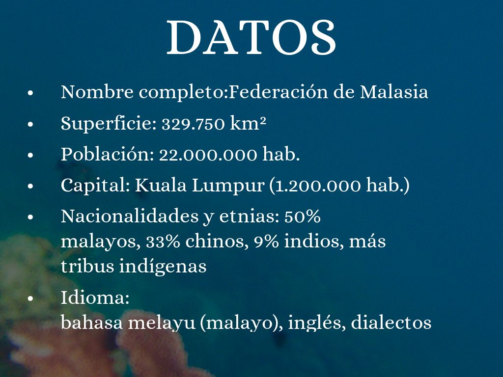 - Capital: Kuala Lumpur (1.200.000 hab.)