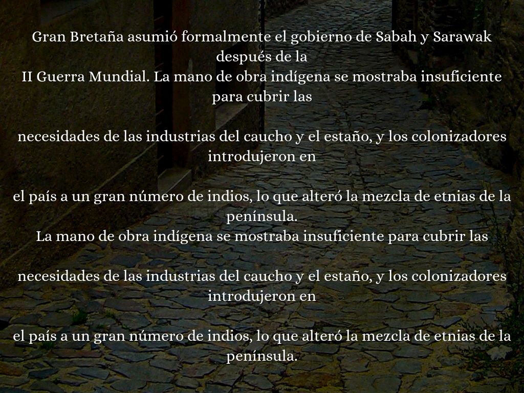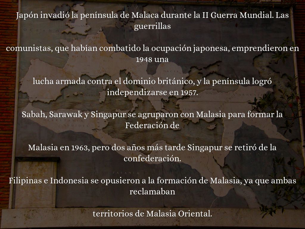 - Malasia insular, al este, formada por los Estados de Sabah y Sarawak, que ocupan