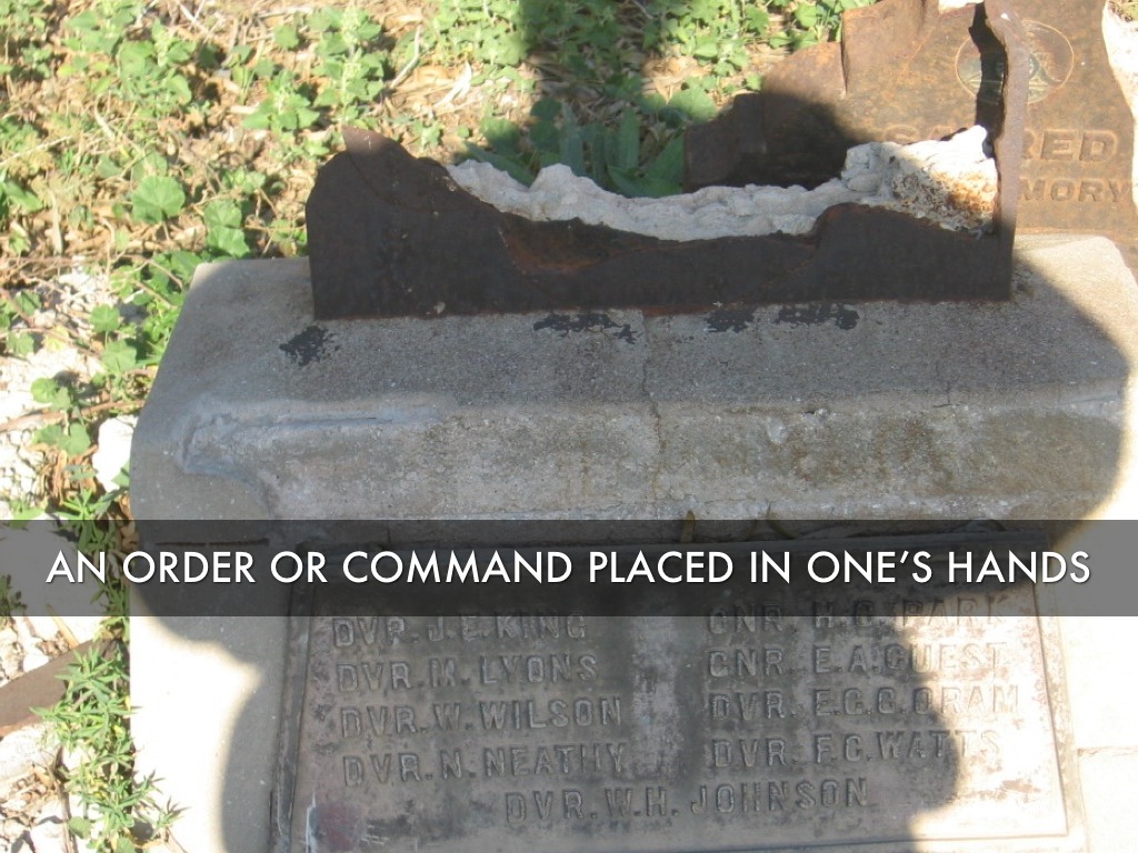 an order or command placed in one’s hands