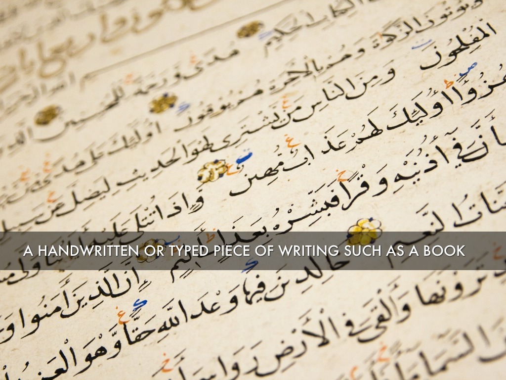 a handwritten or typed piece of writing such as a book