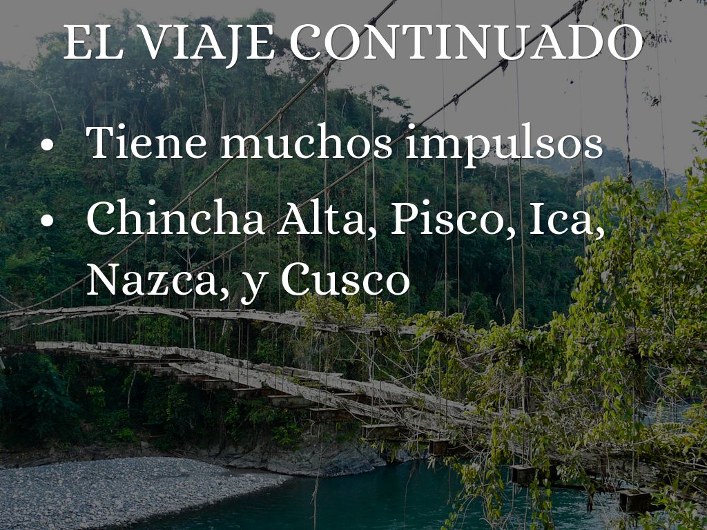 Chincha Alta, Pisco, Ica, Nazca, y Cusco