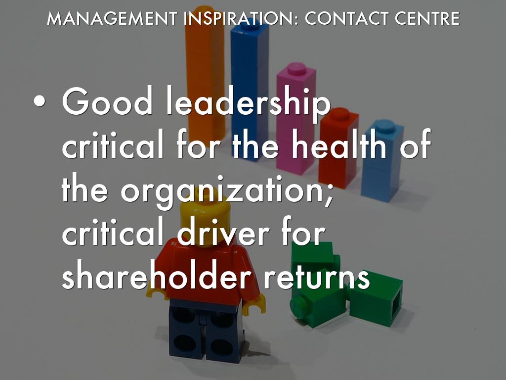 Good leadership critical for the health of the organization; critical driver for shareholder returns