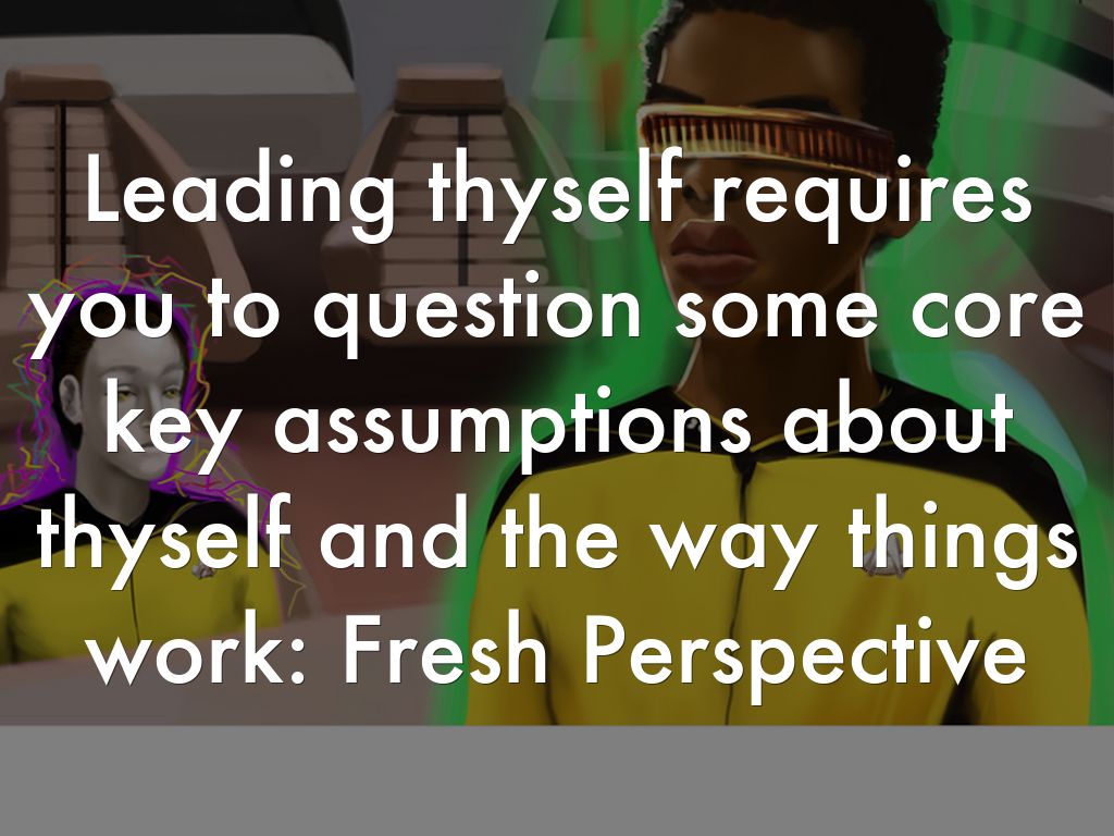 Leading thyself requires you to question some core key assumptions about thyself and the way things work: Fresh Perspective