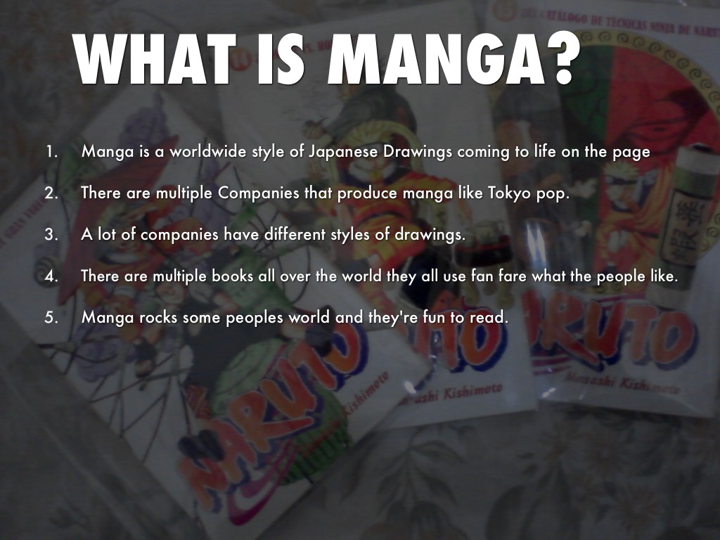 - Manga is a worldwide style of Japanese Drawings coming to life on the page
