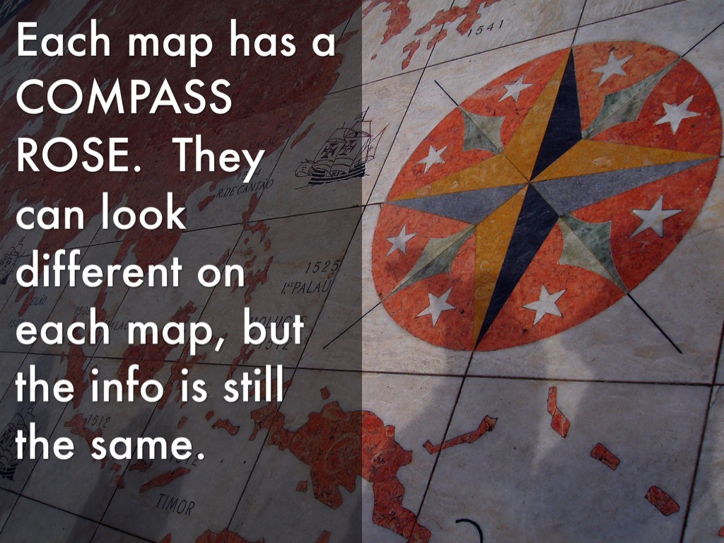 COMPASS ROSE. They can look different on each map, but the info is still the same.