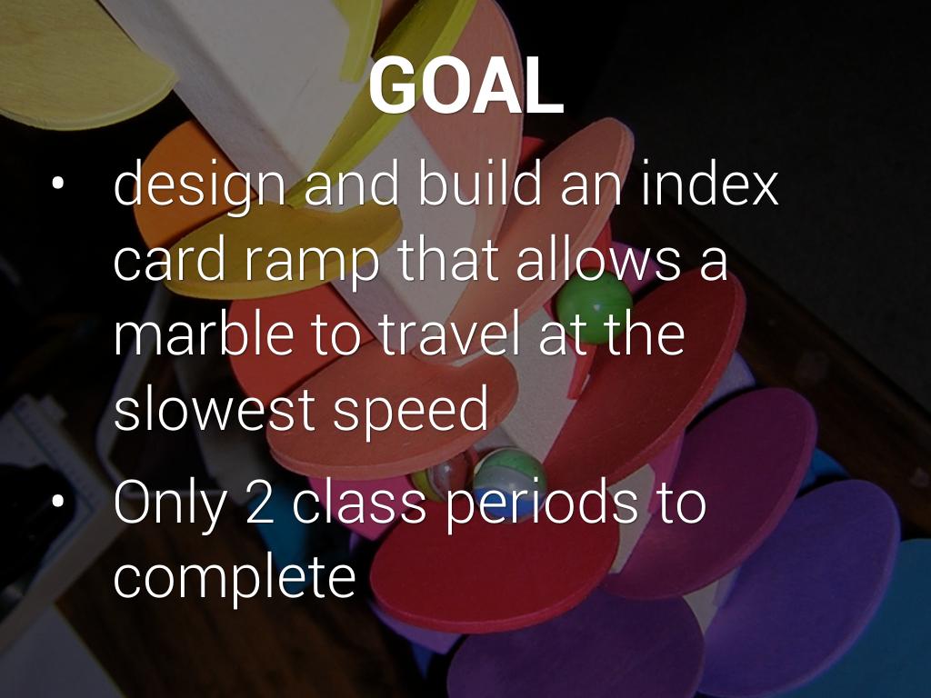 design and build an index card ramp that allows a marble to travel at the slowest speed