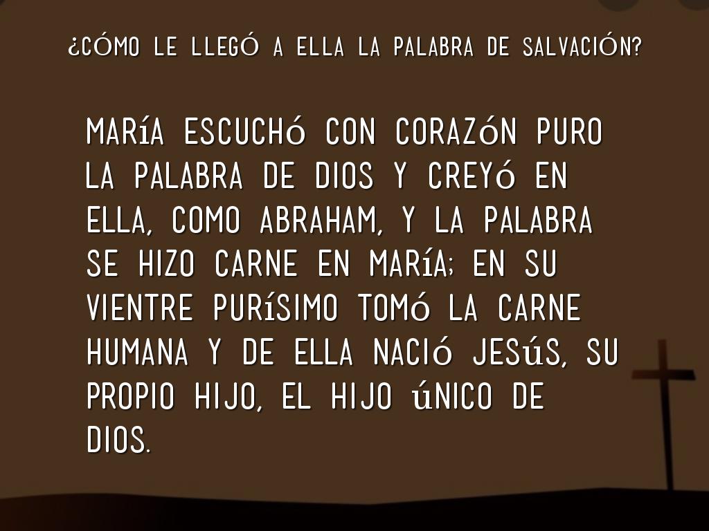 - María creyó en lo que el ángel le anunciaba, y la Palabra se encarnó en ella. María siempre escuchaba con atención y meditaba en su corazón los acontecimientos y las palabras que ocurrían de parte de Dios en su vida.