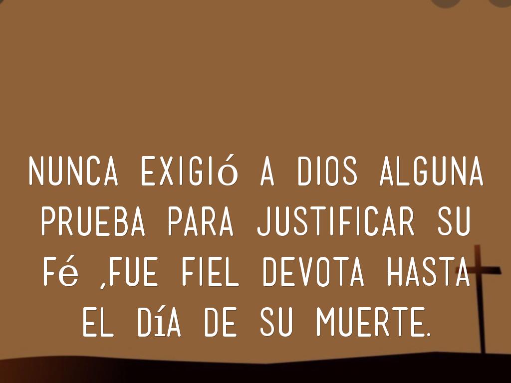 Nunca exigió a Dios alguna prueba para justificar su fé ,fue fiel devota hasta el día de su muerte.